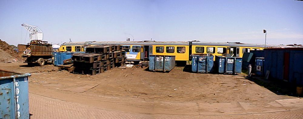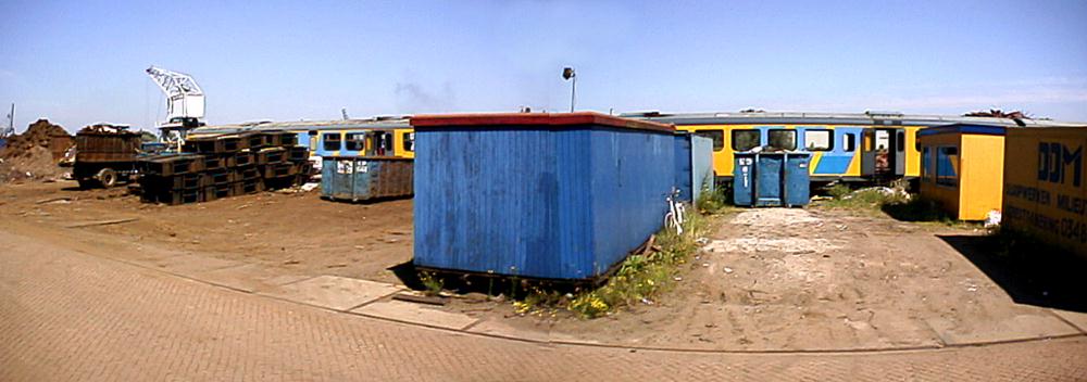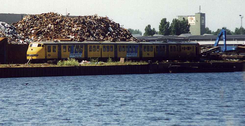 Op 16-06-1999 werden de mBDk124+B144+ABk133 door de 137 naar HKS metals in de Westhaven gesleept. Op deze foto, tien dagen later genomen, zijn de ABk en B te zien. De B is zijn ruiten al kwijt, en links voor de ABk liggen diverse gedemonteerde onderdelen afkomstig van onder de vloer.
