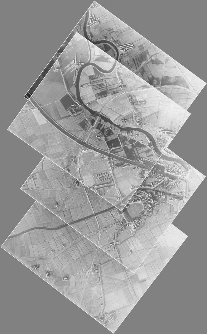 Voordat het Duitse leger definitief capituleerde is er in het voorjaar van 1945 nog zwaar gevochten in Noord-Oost Groningen. Op deze foto's is een aantal van de versterkingen 1 2 3 4 te zien die werden aangelegd. Ook zichtbaar is de vroegere NOLS-spoorlijn Zuidbroek - Delfzijl; de rails waren een aantal jaren eerder al verwijderd, maar de spoordijk kon door de bezetter nog worden gebruikt als onderdeel van de verdediginslinie rondom Delfzijl.