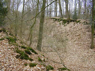 Wie hier een eindje het bos inloopt komt tussen de bomen en struiken echter wel degelijk nog een deel van de oude ingraving tegen. Vlak bij de weg is deze nog ongeveer vier meter diep, maar verderop wordt dit geleidelijk minder doordat de Lochemse Berg hier naar beneden loopt. Na ongeveer honderd meter buigt de ingraving naar links af om te eindigen op een zandweg met de toepasselijke naam 'Onderlangs'.