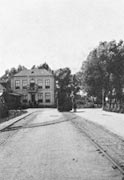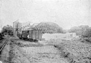 Gelderland in Beeld: De eerste twee foto's zijn genomen kort na de 'cycloon' die op 10 augustus 1925 grote verwoestingen in Borculo aanrichtte. Op de tweede foto is links de achterkant van het zwaar beschadigde hotel 'Stad Borculo' zichtbaar met daarnaast enkele tramwagens. De fotograaf kijkt hier in oostelijke richting, links komt nog net het tramspoor uit Barchem in beeld. De foto rechtsboven is in betere tijden genomen en toont de voorzijde van het hotel. Rechts in de verte is nog te zien hoe het tramspoor omhoog loopt om de GOLS-lijn over te steken. Tussen het huis en het veldje links loopt de Spoorstraat die beide tramsporen kruist, deze kruising is ook te zien op de twee foto's linksonder. Ter oriëntatie: het gebouw links op de derde foto is hetzelfde als dat rechts op de vijfde foto. De laatste foto is wat verder richting het GOLS-station genomen, hierop is goed het remisespoor te zien dat naar links afbuigt.
