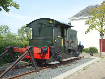 17-08-2008Op 29 januari 2005 opende het Nationaal Modelspoormuseum zijn deuren in het geheel gerestaureerde stationsgebouw van Sneek. Dezelfde dag werd ook Sik 323 onthuld die na een grondige opknapbeurt op een stuk spoor naast het station was opgesteld. Op een bordje bij de locomotief is onderstaande tekst te lezen: Locomotor NS 323 'Sik van Snits'In 2005 is deze voormalige locomotor 323 van de Nederlandse Spoorwegen geplaatst als herinnering aan de in 1968 opgeheven tramlijn Sneek-Bolsward.Op 8 augustus 1882 werd door de Nederlandsche Tramweg Maatschappij (NTM) de lijn Sneek-Bolsward geopend. Sneek kreeg dus al een tramweg-verbinding voordat de spoorlijn Leeuwarden-Sneek een jaar later werd geopend. In 1886 werd de tramlijn doorgetrokken naar Joure-Heerenveen en vanuit Bolsward via Arum naar Harlingen. Er reden ook rechtstreekse trams van Bolsward via Sneek over de spoorlijn naar Leeuwarden. De verbindingen met Harlingen en Joure werden in 1947 beëindigd. Na deze periode bleef het traject Sneek-Bolsward als goederenverkeer bestaan. De NTM-stoomtramlocomotieven werden in de goederendienst vervangen door de locomotoren serie 201-369 van de Nederlandse Spoorwegen. Deze 21 ton zware locomotoren met dieselelektrische aandrijving hebben tot 28 juni 1968 de dagelijkse goederentrams van het Sneker emplacement, via de Bolswarderweg en dwars door de dorpen Ysbrechtum en Nijland naar de 'Hollandia'-zuivelfabriek in Bolsward v.v. gereden. Vanuit Sneek reden deze locomotoren ook goederentreinen naar IJlst, Oudega en Bozum. Ze verzorgden bovendien de rangeerdienst met goederenwagons op het toenmalige Sneker emplacement. De locomotoren hadden de bijnaam 'Sik', naar het mekkerend geluid van de op uitlaatgassen werkende fluit. Het hier opgestelde exemplaar met het nummer 323 werd in 1949 gebouwd door Werkspoor in Amsterdam. Na een werkzaam leven in de goederen- en rangeerdienst bij de Nederlandse Spoorwegen werd deze 'Sik' overgenomen door Volker Stevin en ingezet voor spoorweg-vernieuwingswerkzaamheden. In 2004 is de 323 door deze aannemer aan de gemeente Sneek geschonken als herinnering aan het goederenverkeer via de tramlijn Sneek-Bolsward. Dankzij de spontane medewerking van vele bedrijven en instanties, die dit project mede mogelijk hebben gemaakt, is de 'Sik' op 29 januari 2005 op deze standplaats onthuld. |